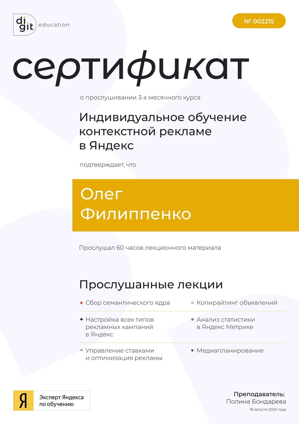 Руководил разработкой сайтов для федеральных компаний «Фианит Ломбард», «Планета Авто»