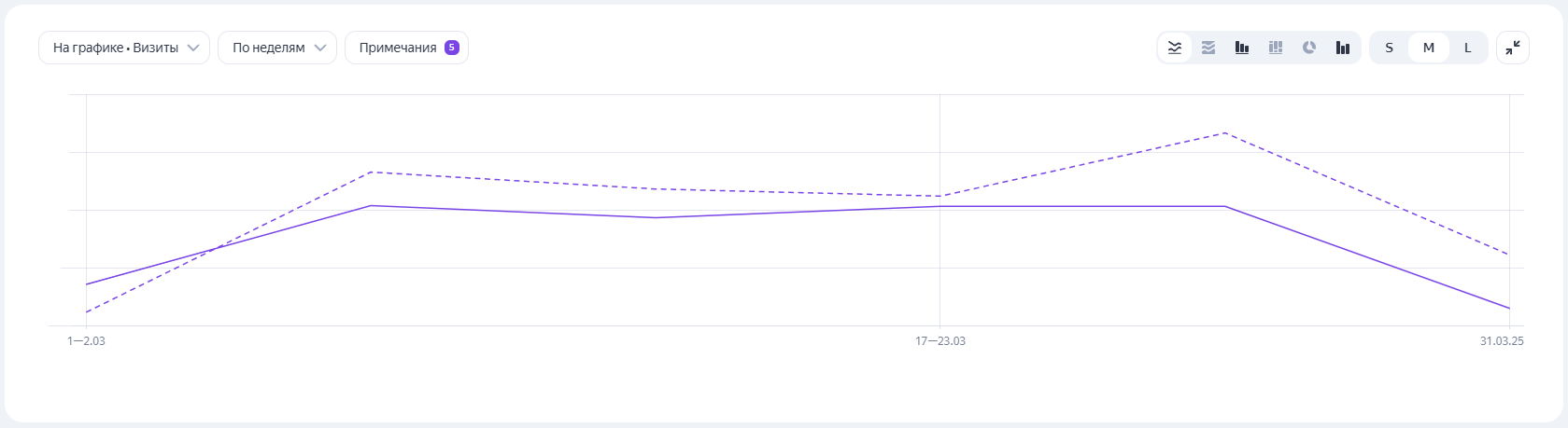 - Визитов стало меньше на четверть — зато время на сайте выросло на 47% (с 19 до 28 минут)