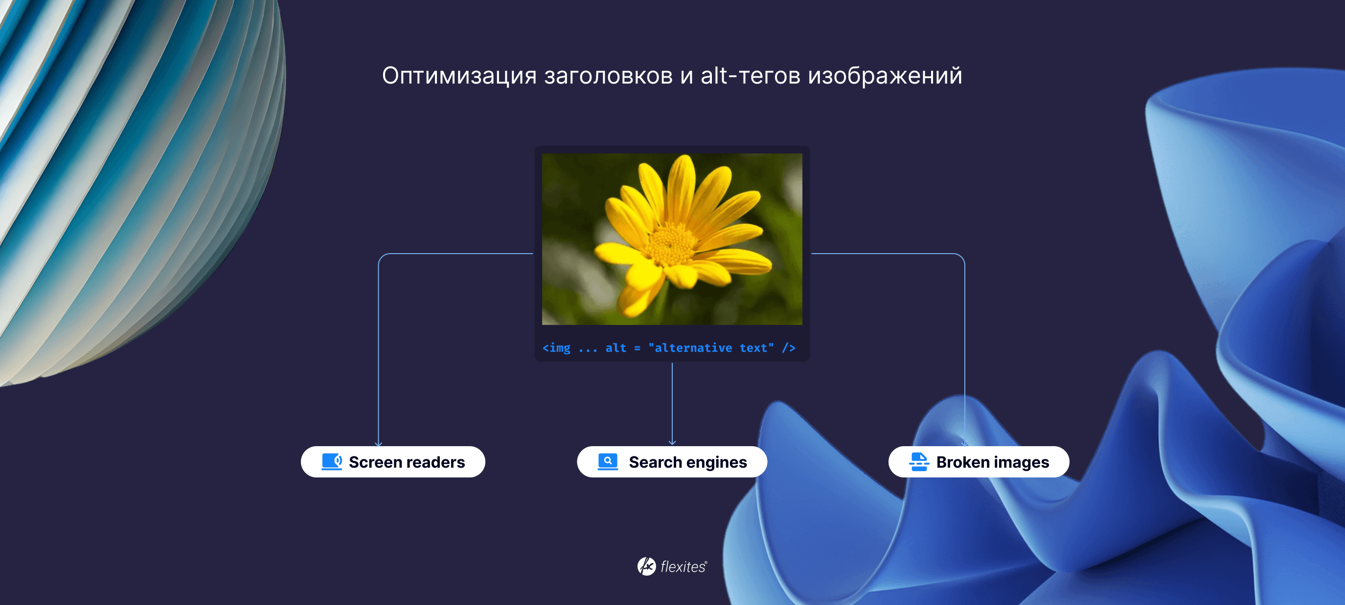 Не менее важной является оптимизация изображений через alt-теги. Для поисковых систем alt-теги — это текстовое описание того, что изображено на картинке.