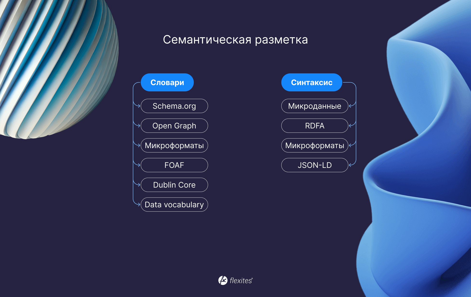 Синтаксис — это ряд правил, которые применимы к словарям. Синтаксис нужен для правильного регулирования работы тегов и их принадлежности определенным блокам (к примеру, частям текста).